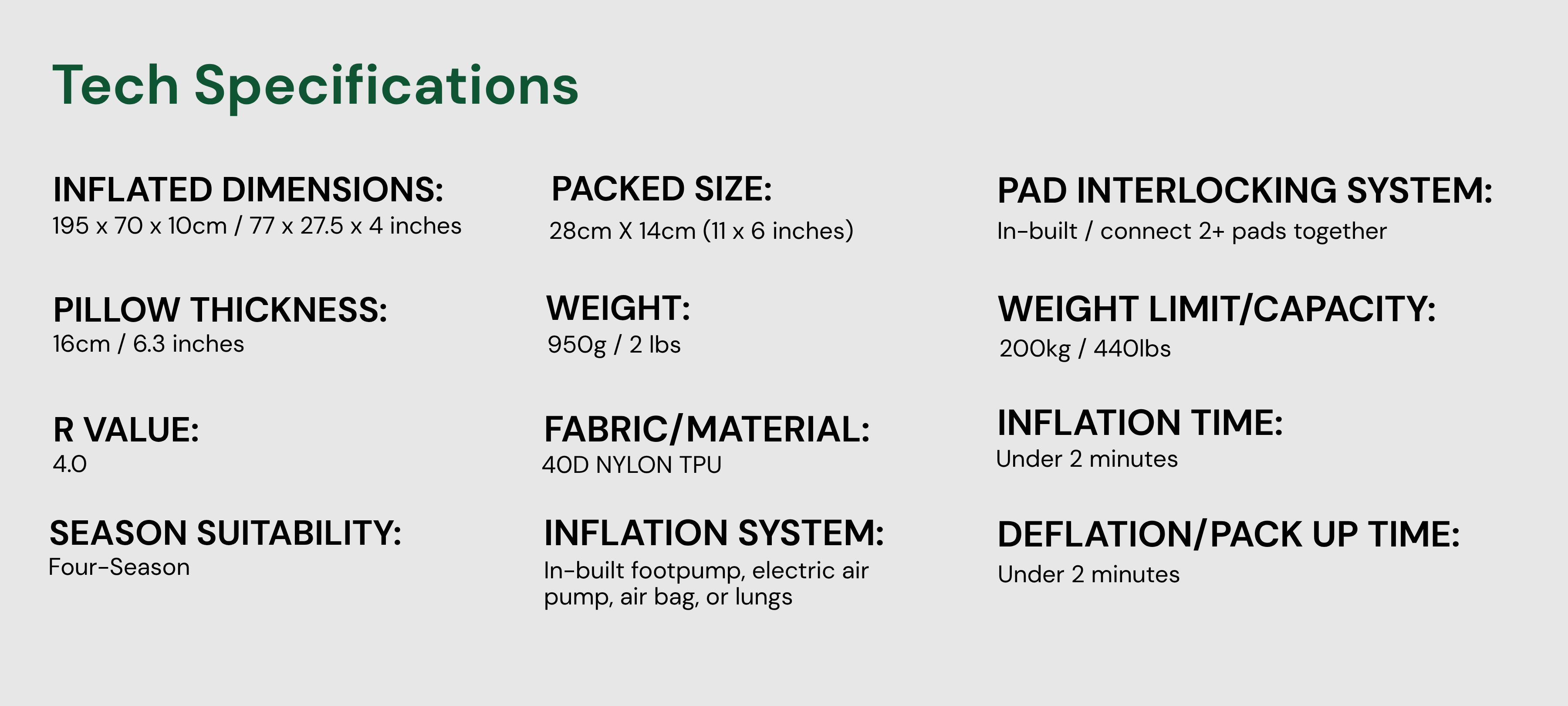While the NorthPeak Mattress Pro™ excels as a single sleeper, you can connect multiple pads seamlessly using the integrated snap-lock side connectors to create a spacious double or even triple sleeping setup.